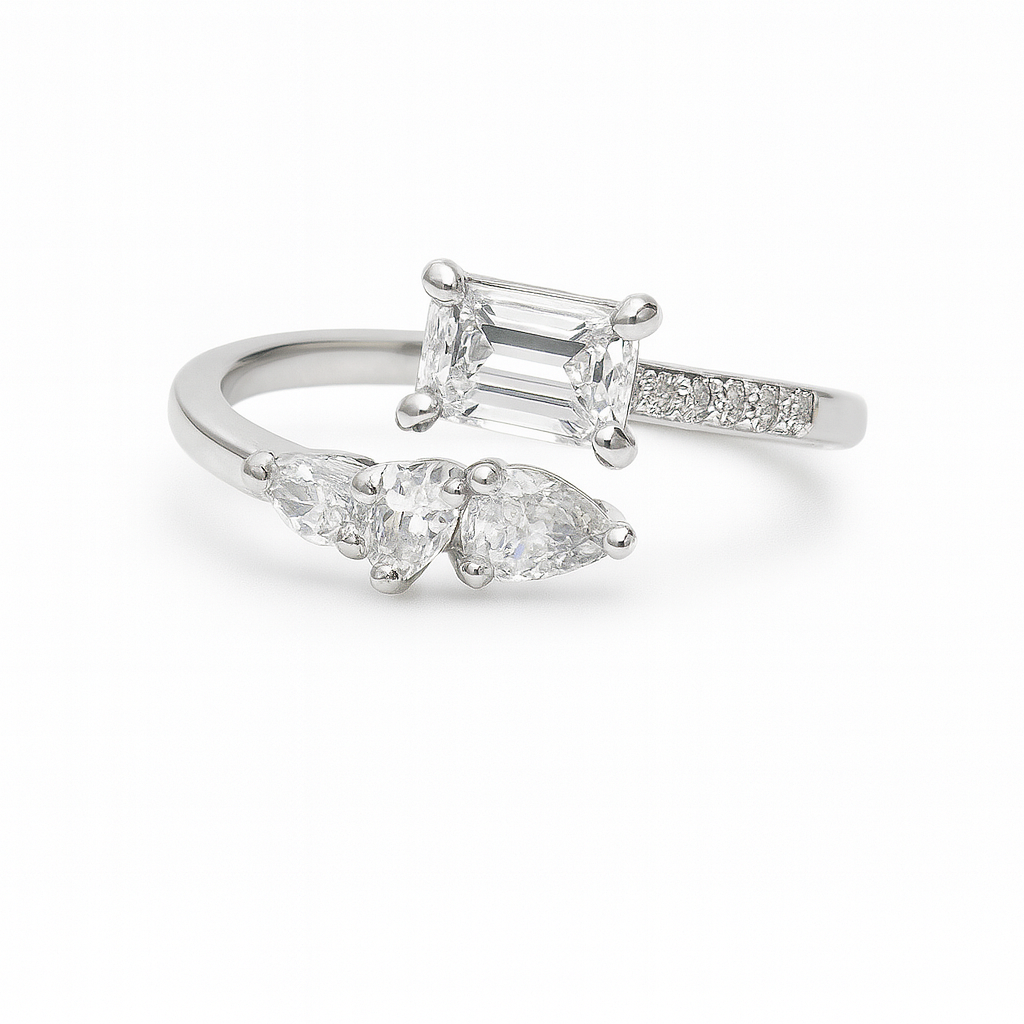 Anel Flora Regulável - Banhado Em Ródio Branco