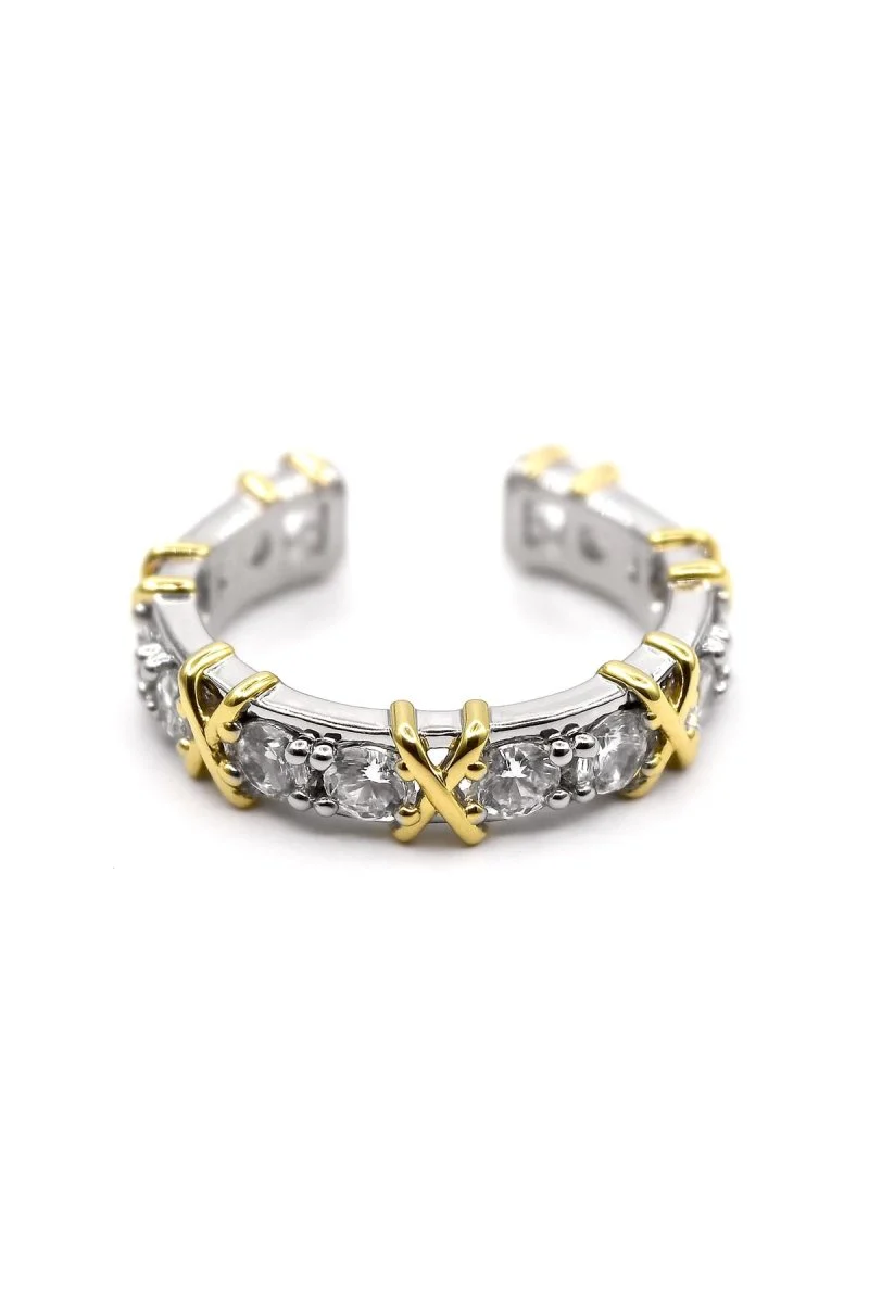 Anel X Ibiza Banho Duo- Banhado Em Ródio Branco