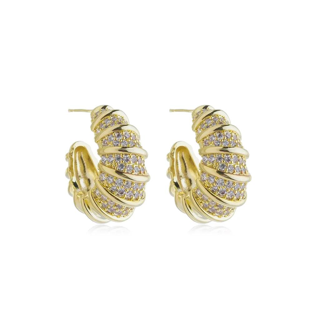 Brinco Argola Croissant Cravejada- Banhado no Ouro18k