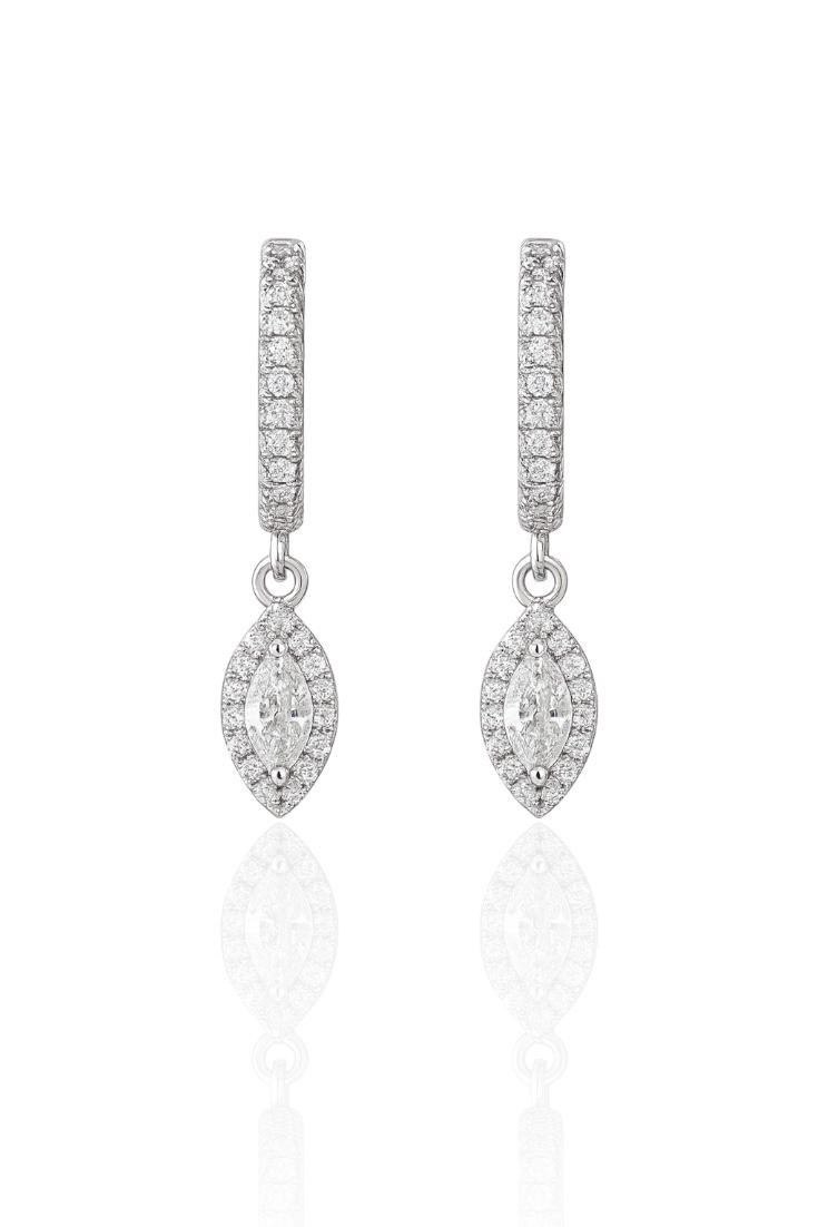 Brinco Gota Click Cravejado - Banhado Em Ródio Branco