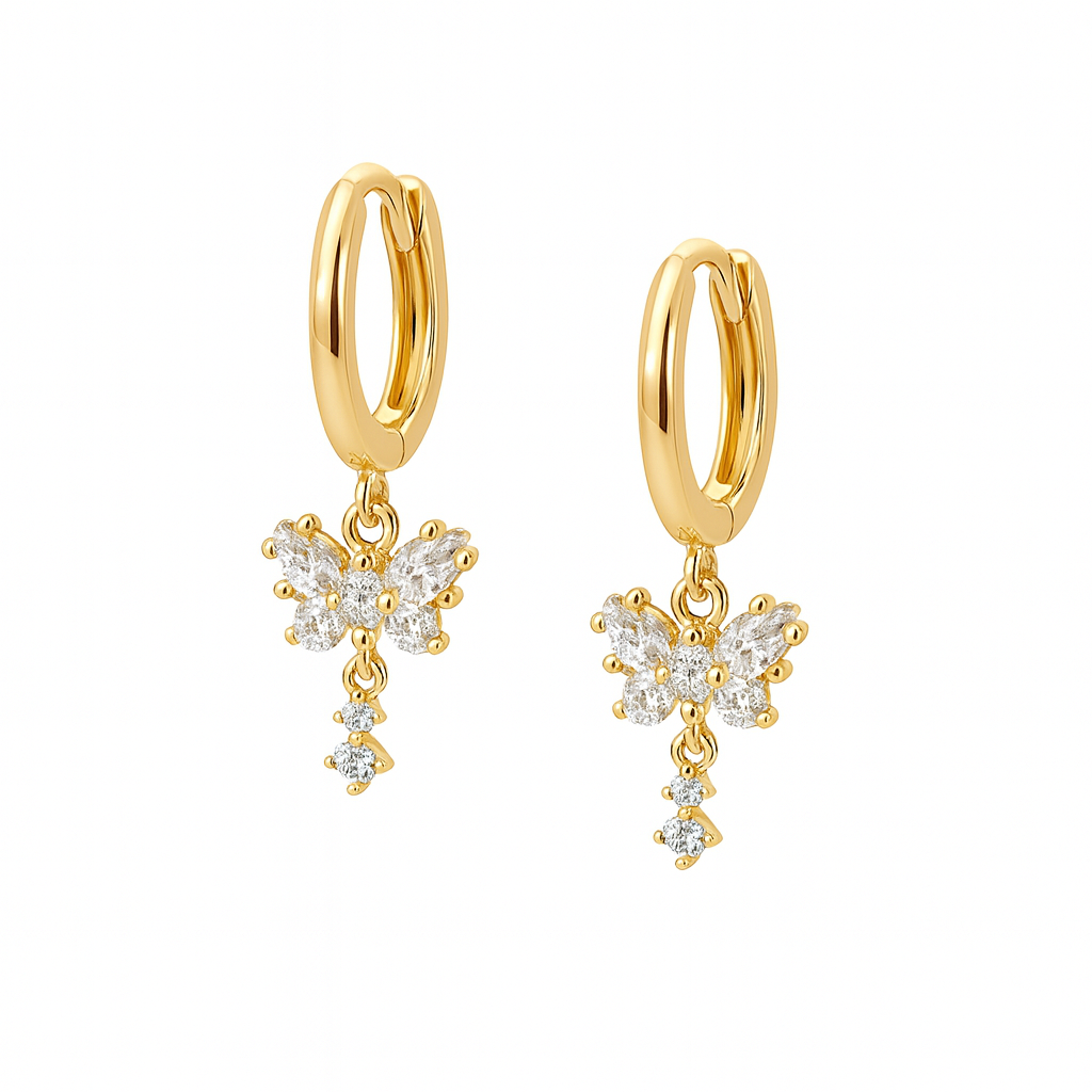 Brinco Borboleta Cravejado Click- Banhado no Ouro18k