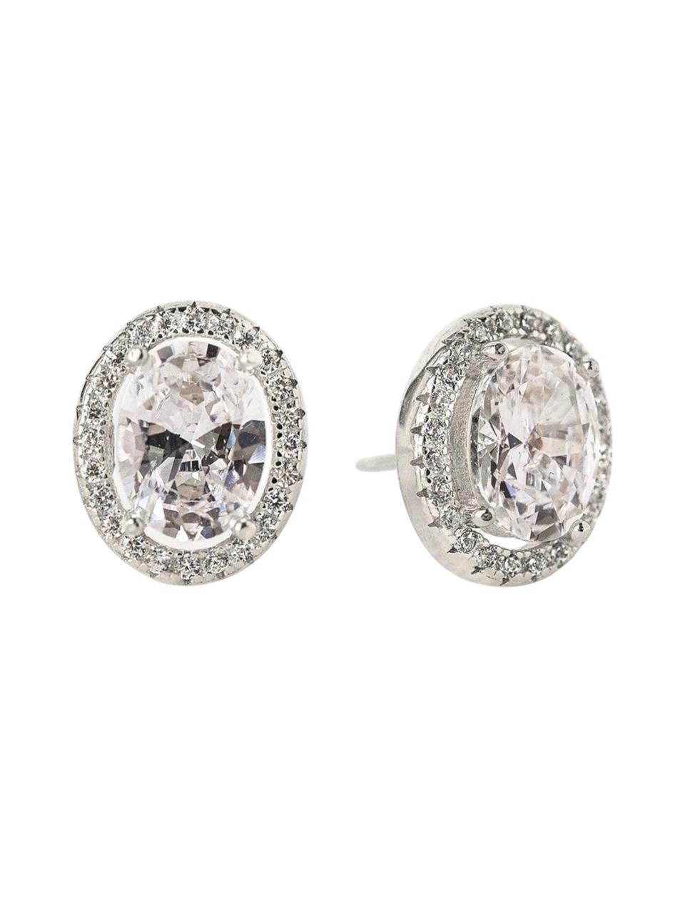 Brinco Oval Cristal Cravejado Stella- Banhado Em Ródio Branco