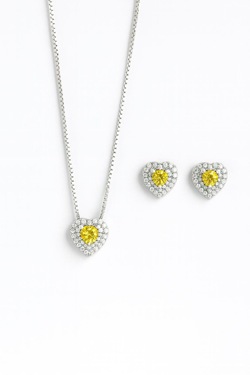 Conjunto Coração Cravejado Lyra- Banhado Á Ródio Branco