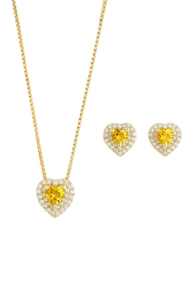 Conjunto Coração Citrino Lyra - Banhado Á Ouro18k Branco