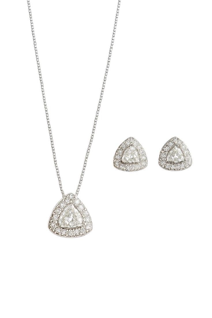 Conjunto Cravejado Triângulo Ivi- Banhado Em Ródio Branco