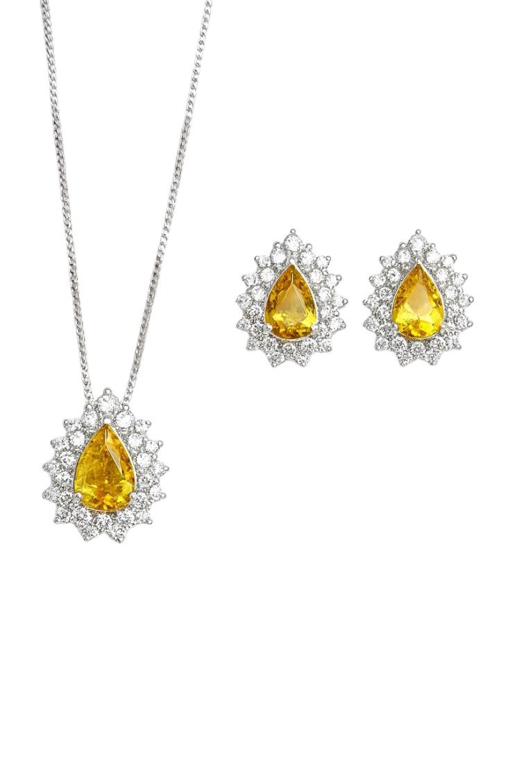 Conjunto Gota Citrino Elissa - Banhado em Ródio Branco