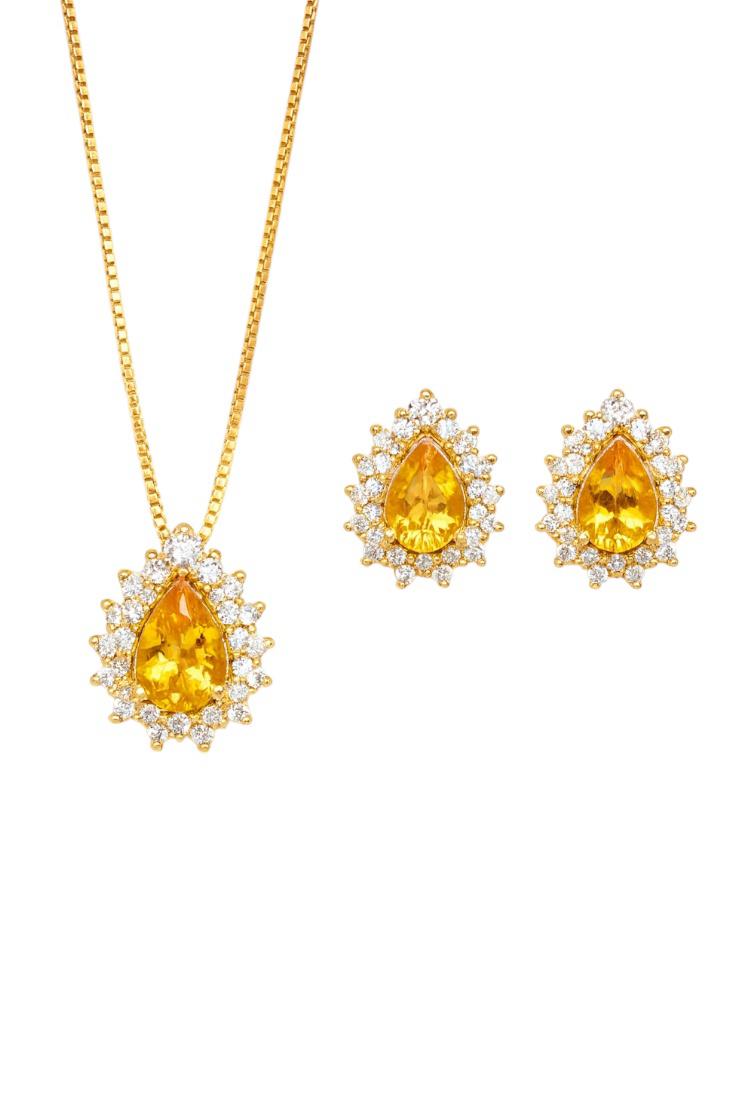 Conjunto Gota Citrino Elissa - Banhado no Ouro18k