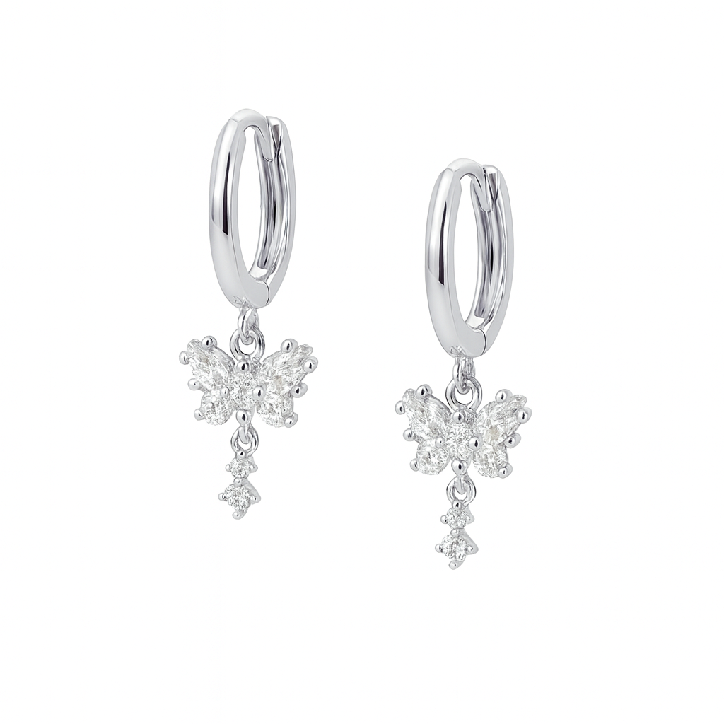 Brinco Borboleta Cravejado Click- Banhado em Ródio Branco