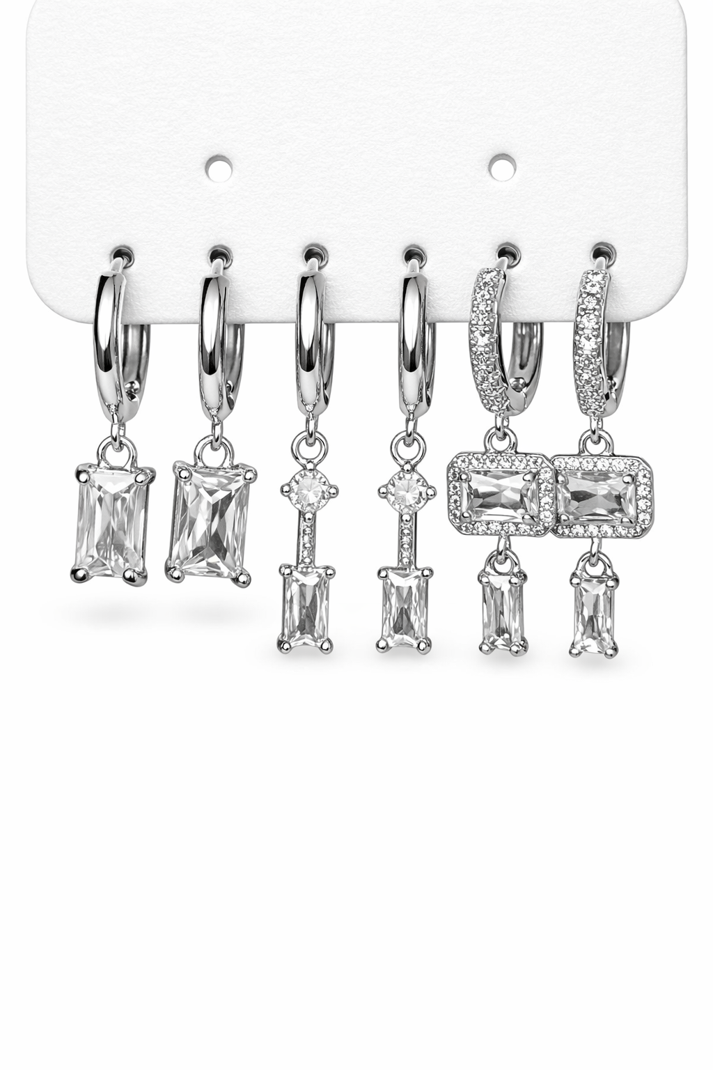 Trio de Brincos Argolinhas Com Pingente - Banhado Em Ródio Branco