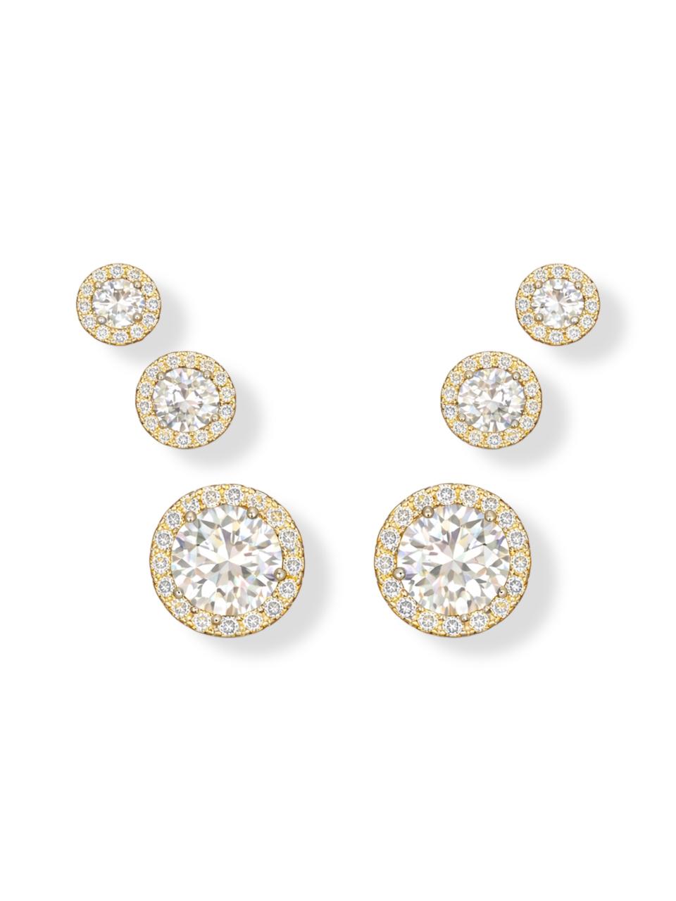 Trio de Brincos Cristal - Banhado Em Ouro18k